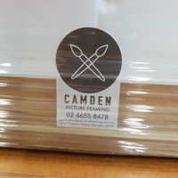 Mounted in a heavy timber frame by Camden Picture Framing.
