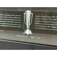 The item is a limited edition, with only 500 pieces available worldwide. Each piece is numbered and comes with a certificate of authenticity to ensure that it is a genuine collector’s item. The memorabilia features a high-quality photograph of Peter Brock and Craig Lowndes in action during the Bathurst 1000 race, presented alongside their authentic signatures. The photograph is professionally mounted and framed to provide a sleek and elegant finish.