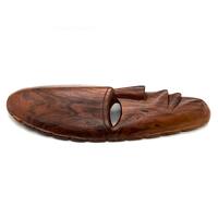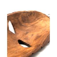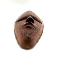 This unique wooden mask showcases the intricate artistry of Fijian tribal culture. Featuring a stylized human face with fish-like elements incorporated into the design, this mask offers a captivating blend of traditional and symbolic motifs.