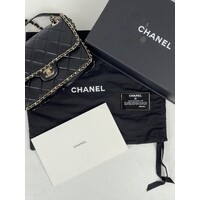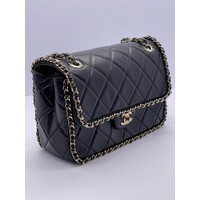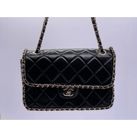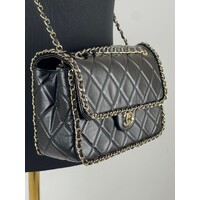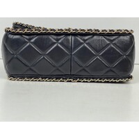 Black Quilted Quilted Calfskin Medium Running Chain Around Flap Handbag